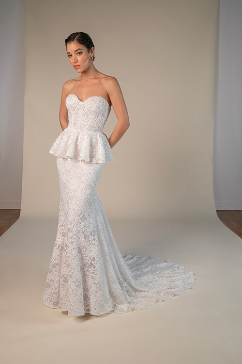 Featuring sillouettes that are both contemporary, timeless and utterly romantic, classic gowns with hints of glamour. These include trumpet, fit and flare and mermaid gowns that will accentuate your curves, sleek fitting with a touch of sexy detail. Ballgowns that will make you sparkle like a princess, vintage look gowns with both long and cap sleeves, and boho gowns for the free spirited bride.