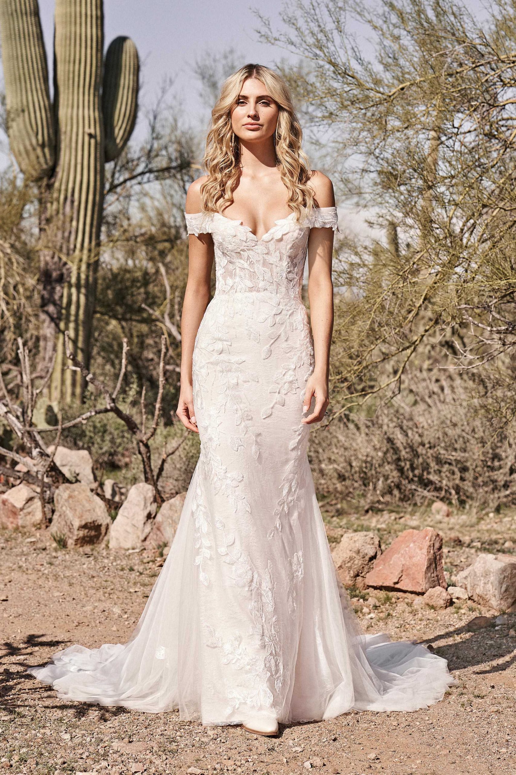 Portrait Neckline Fit and Flare Dress with Gathered Tulle Skirt