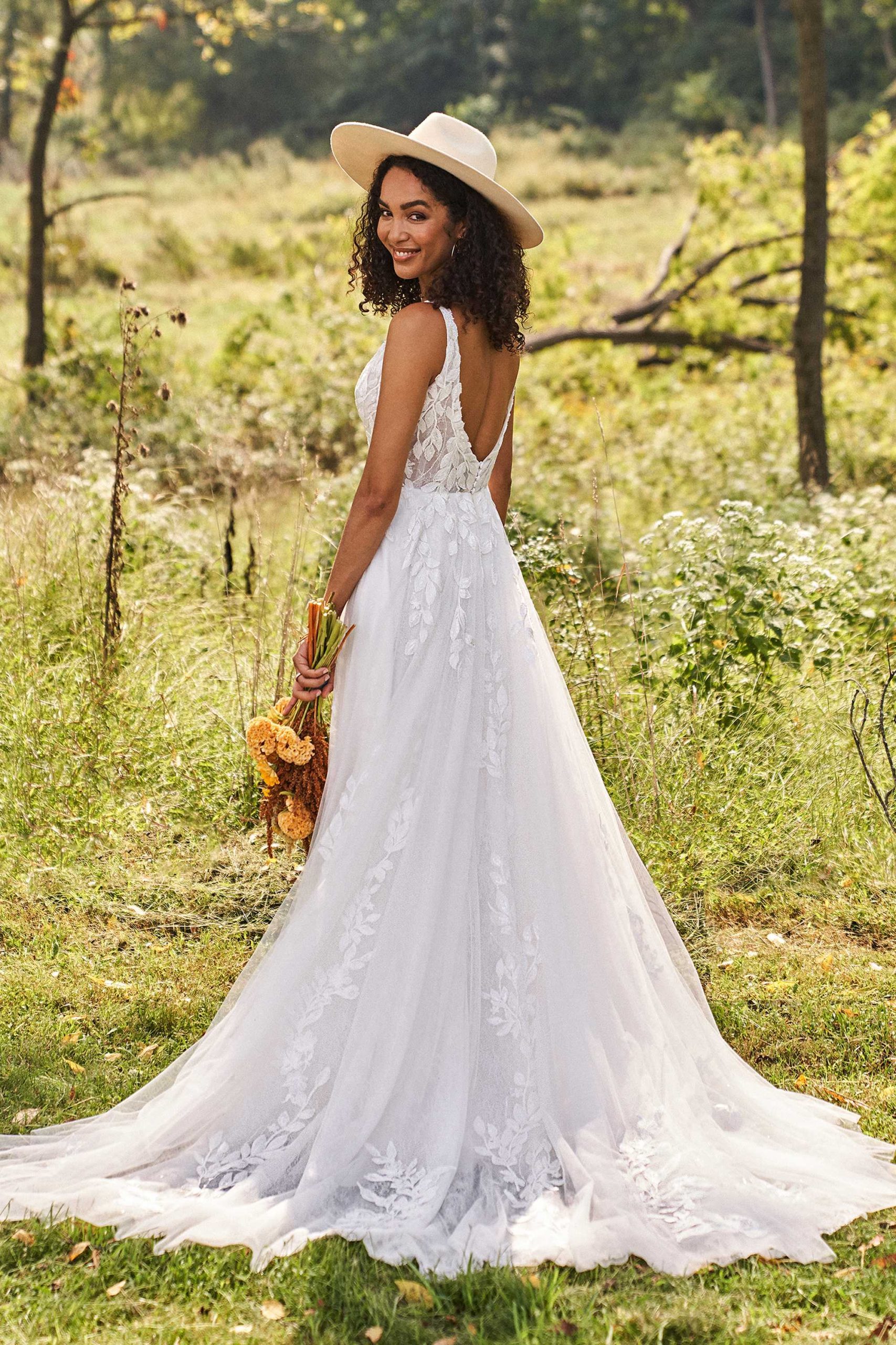 V-Neck Tulle A-Line Bridal Dress with Sequined Lace Appliqués