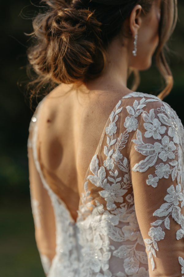 ROMANTIC FIT-AND-FLARE WEDDING DRESS WITH LONG LACE SLEEVES