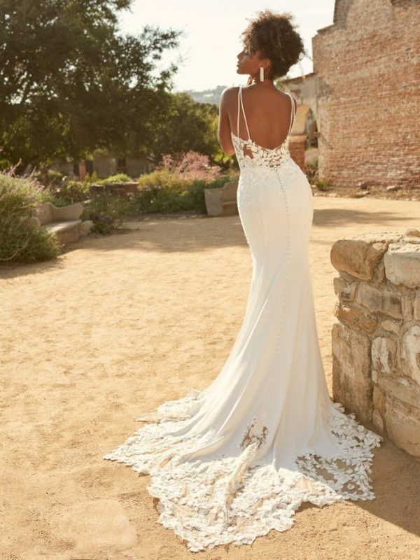 Backless crepe bridal gown in a sexy silhouette