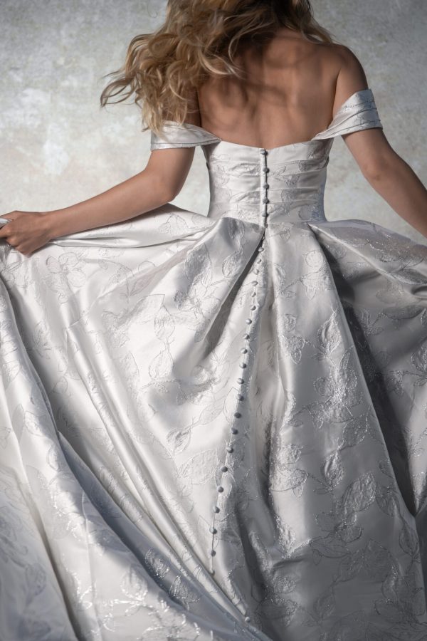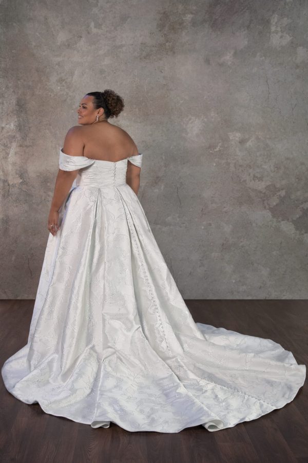LUXE OFF-THE-SHOULDER PLUS SIZE SATIN A-LINE WEDDING DRESS WITH POCKETS