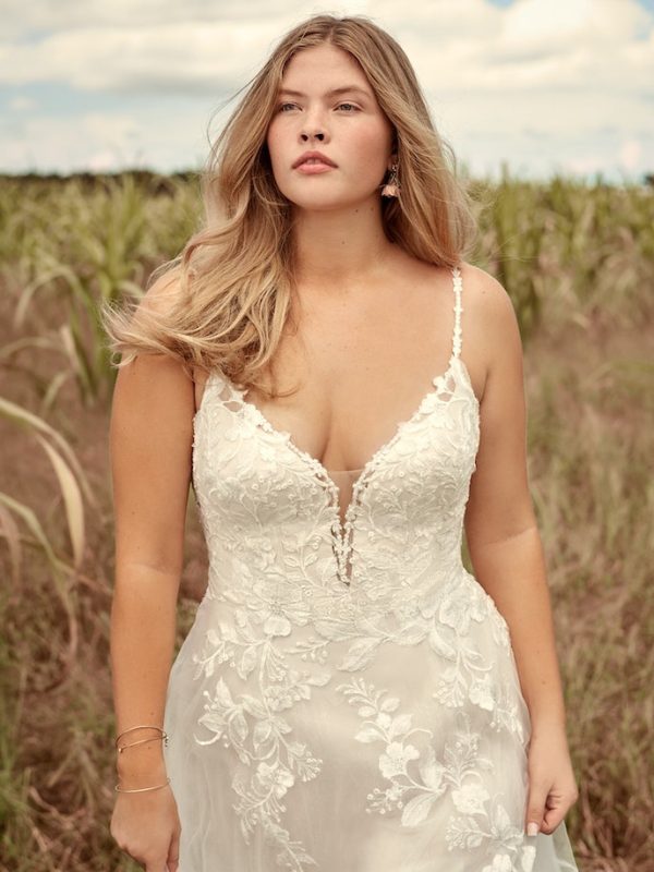 Nature-inspired ball gown wedding dress in sparkly tulle layers