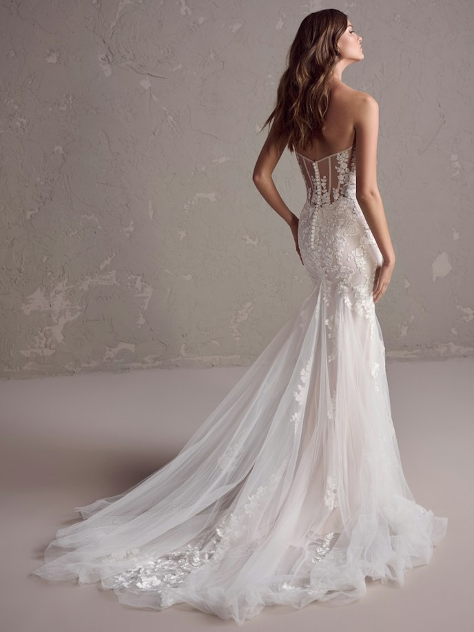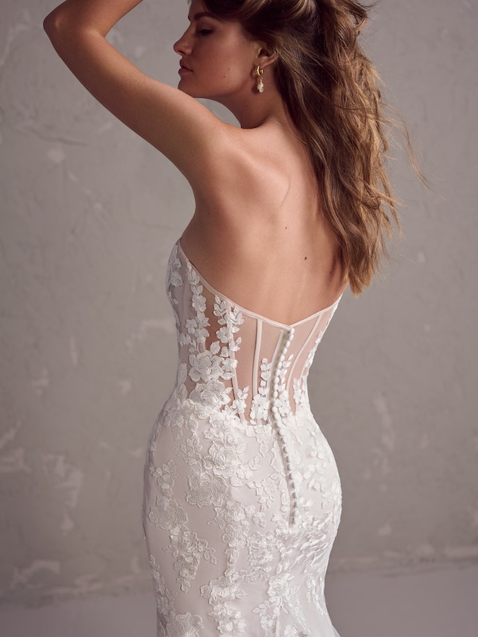 Fit-And-Flare Sexy Floral Wedding Dress With An Illusion Back With Corset Detailing